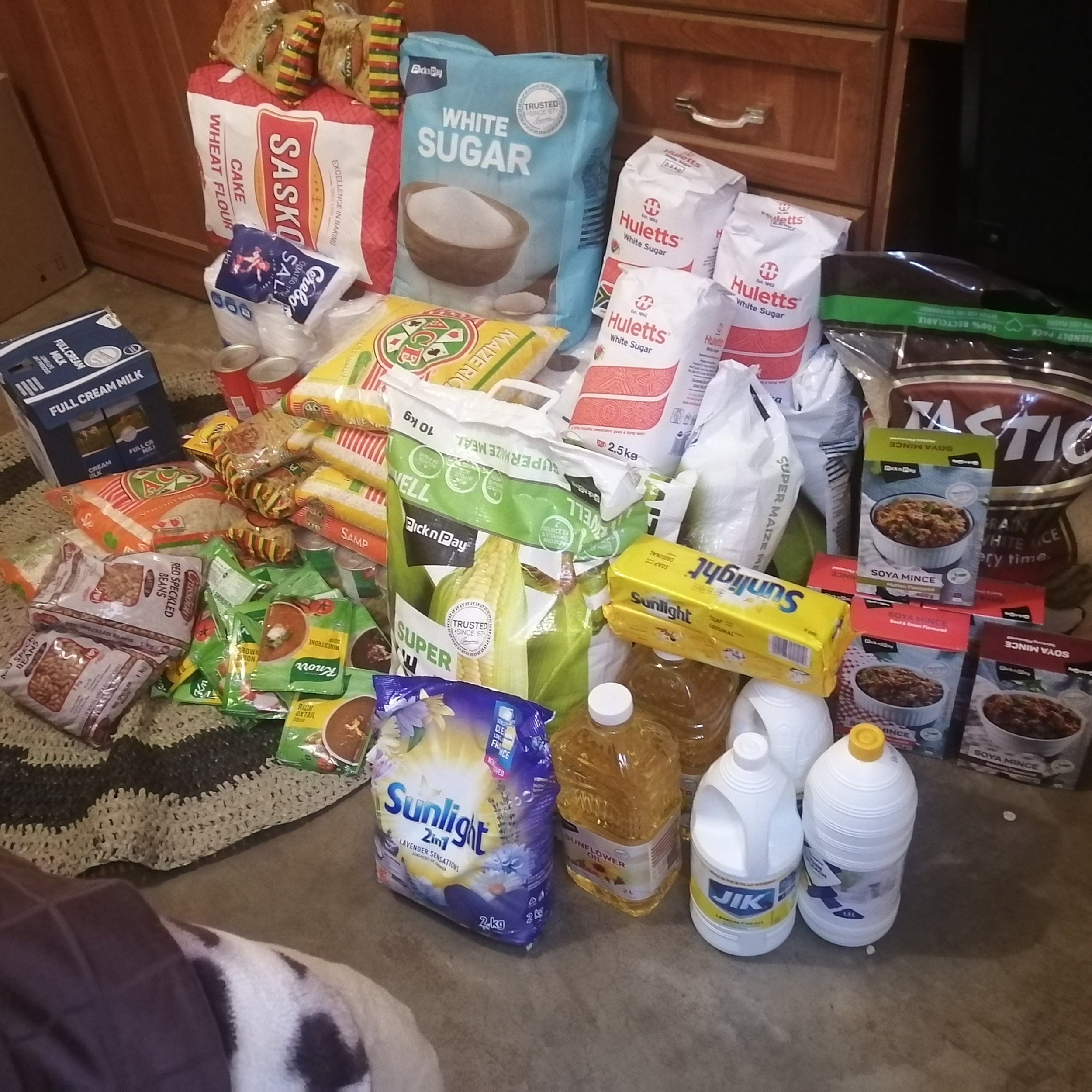 This is a picture of one month of food supplies purchased for Sophie’s Creche.