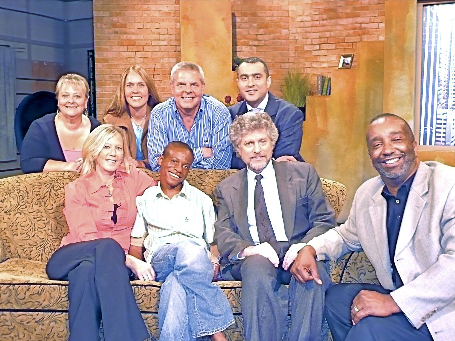 Bottom Row: From Left: Sally Moore, Aid Africa’s Children's Starfish Recipient, Justice Amadi, Aid Africa’s Children’s, Alan Lyons, and ABC7’s Chicago host, Bill Campbell on the set of his show, “Chicagoing."