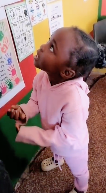 Katlego is a well-spoken 4-year-old hygiene specialist at Sophie’s Creche. Her name means “success.” She not only recites the hygiene habits but demonstrates them as well.